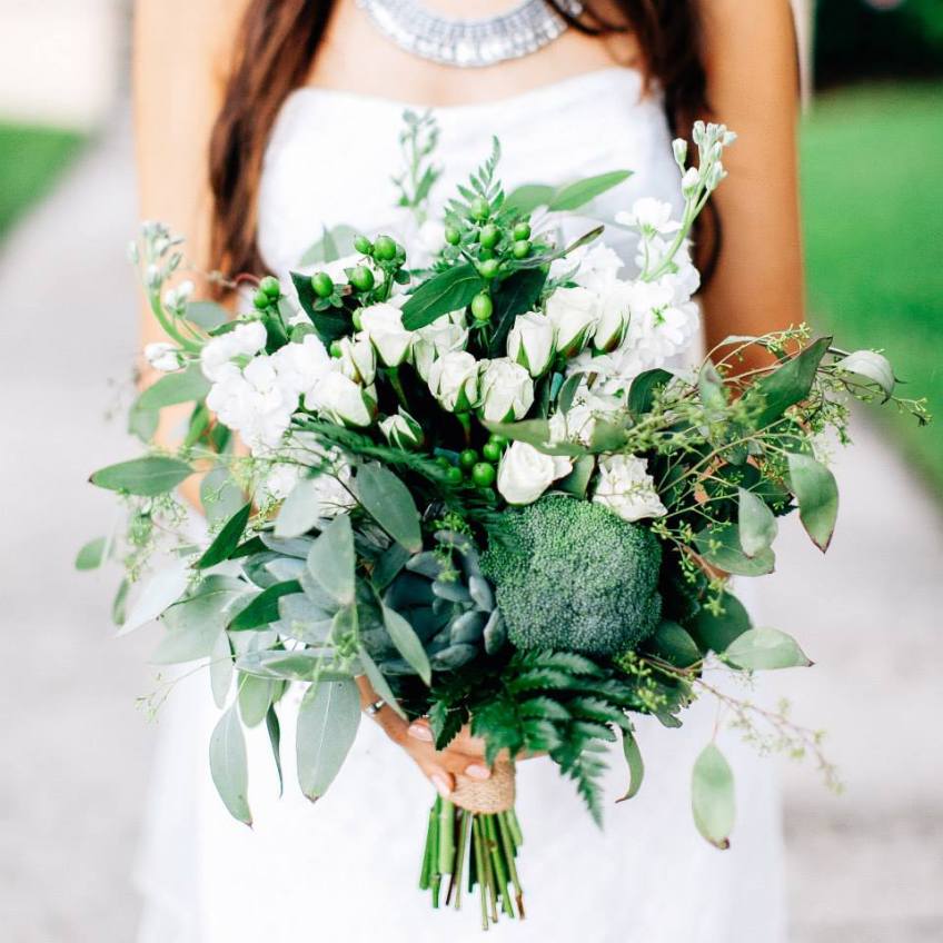 Mia is a vegetarian who dreamed of having a nontraditional wedding. Her bouquet donned broccoli for sentimental reasons, and succulents for added visual texture. With my cat Beans alongside, I went on an amazing adventure to create a free-flowing natural bouquet for such a free-spirited girl!